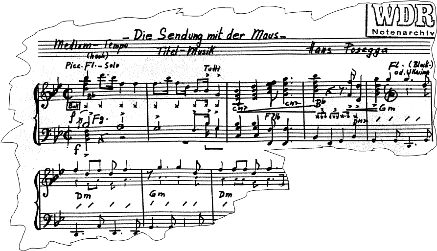 Until his death Hans Posegga worked together with the WDR and created music for children’s television series. He was the first who didn’t compose typical children’s songs but real compositions that hit the spirit of the age but weren’t too complicated for children. His most famous work is the theme music to “Die Sendung mit der Maus” which has remained the same since 1971. Since the 70s there are hardly any children who haven’t come across this soundtrack. Posegga composed and played the music for more than 200 of the show’s animated interludes and thereby created the unique character of the series. Because of his magnificent melodic ingenuity and his infallible feeling for rhythm, working with him was uncomplicated. Whenever Posegga first saw the animation in the studio he would immediately start to improvise on the piano, scribbling notes on paper and would spontaneously came up with a melody, a musical theme or motive. Then, in absolute synchronicity, he would record the new music to the finished film. Even though he distinguished himself through this intuitive way of working, he always felt the urge to write “great music” such as symphonies. Sketches for a concerto for bandoneon and orchestra and also a cello concerto were still lying on his piano when he died in Vienna on 19 May 2002 after a short illness.