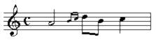 | q | appoggiatura (with rhythmic value, precedes the note name) | ![]() |